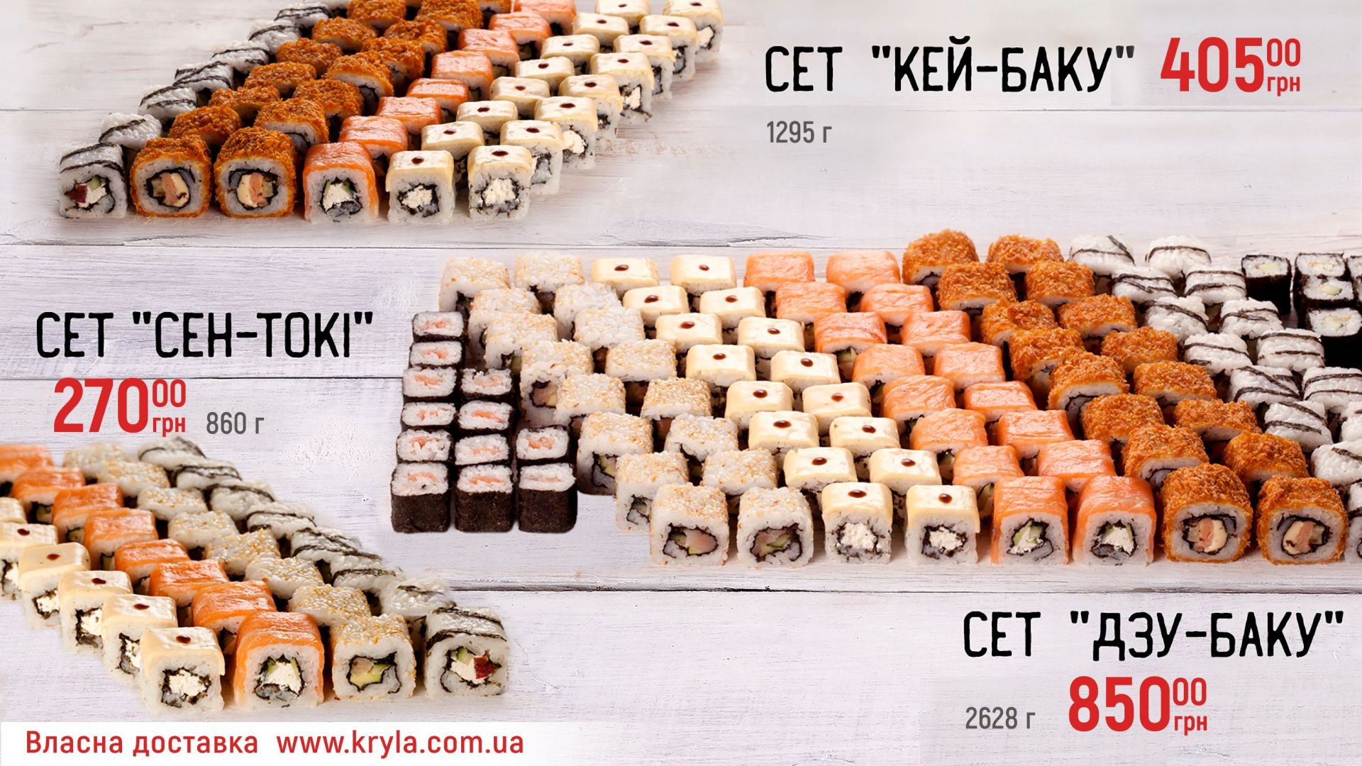 - суші меню "Detroit Sushi Bar", також орієнтовані на американський мотив.