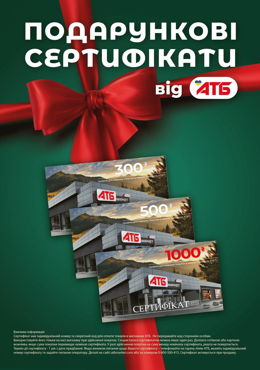 У перші дні весни в дискаунтерах найбільшої торговельної мережі країни, а також на сайті інтернет-магазину «АТБ» у вільному продажу з'явилися подарункові сертифікати, що мають номінали 300, 500 та 1000 гривень. Вони не є іменними, тож запросто можуть стати ідеєю для нетривіального подарунка або бути використані у благодійних цілях.