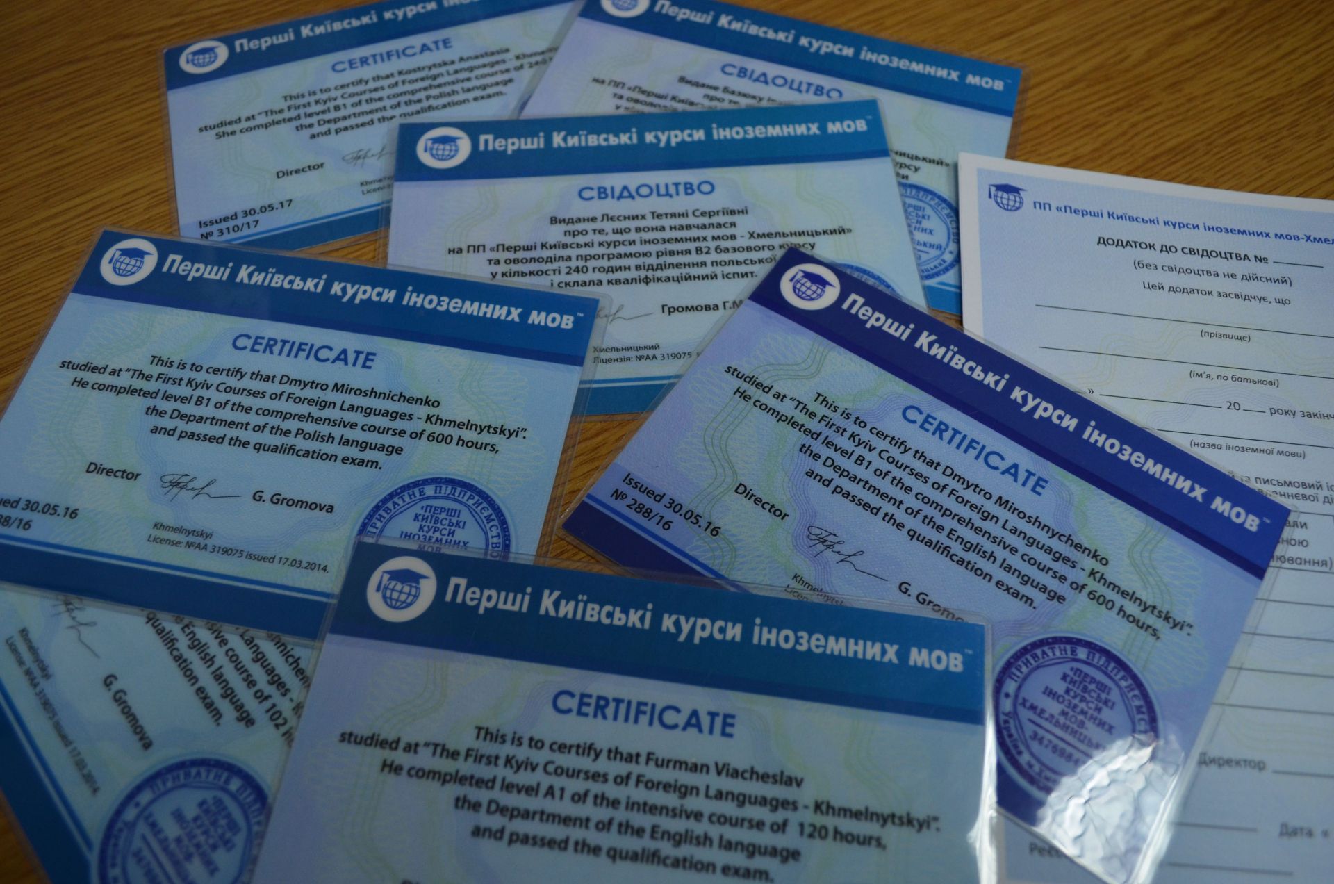 - По закінченню навчання і складання іспиту, всі студенти отримують відповідний сертифікат міжнародного зразка.