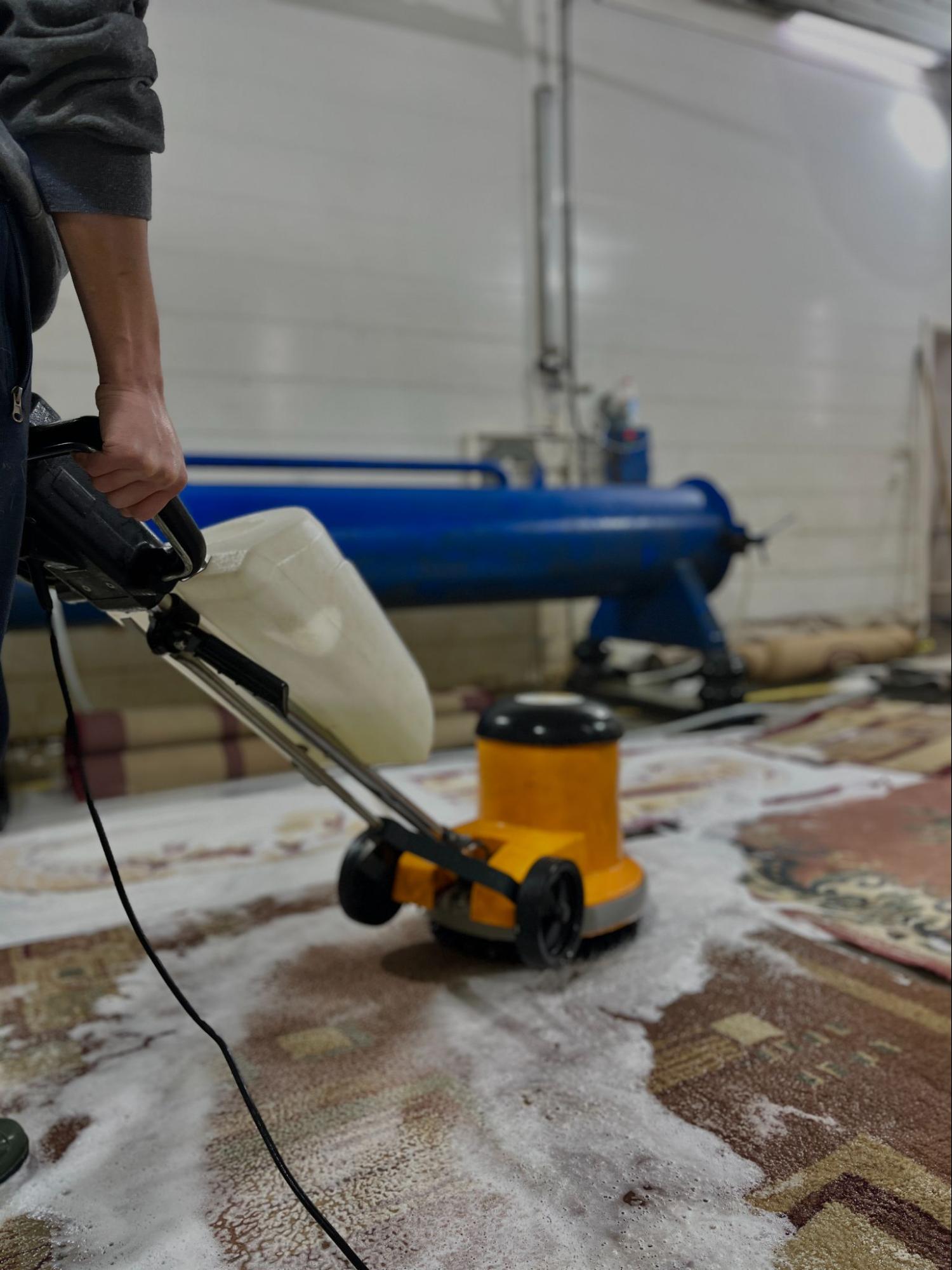 - Прання килима - це спеціалізована пральна машина з розчином у контейнері. Основне завдання такої процедури: позбутись усіх можливих плям та забруднень. Бруд вимивається та розчиняється під час миття килима.