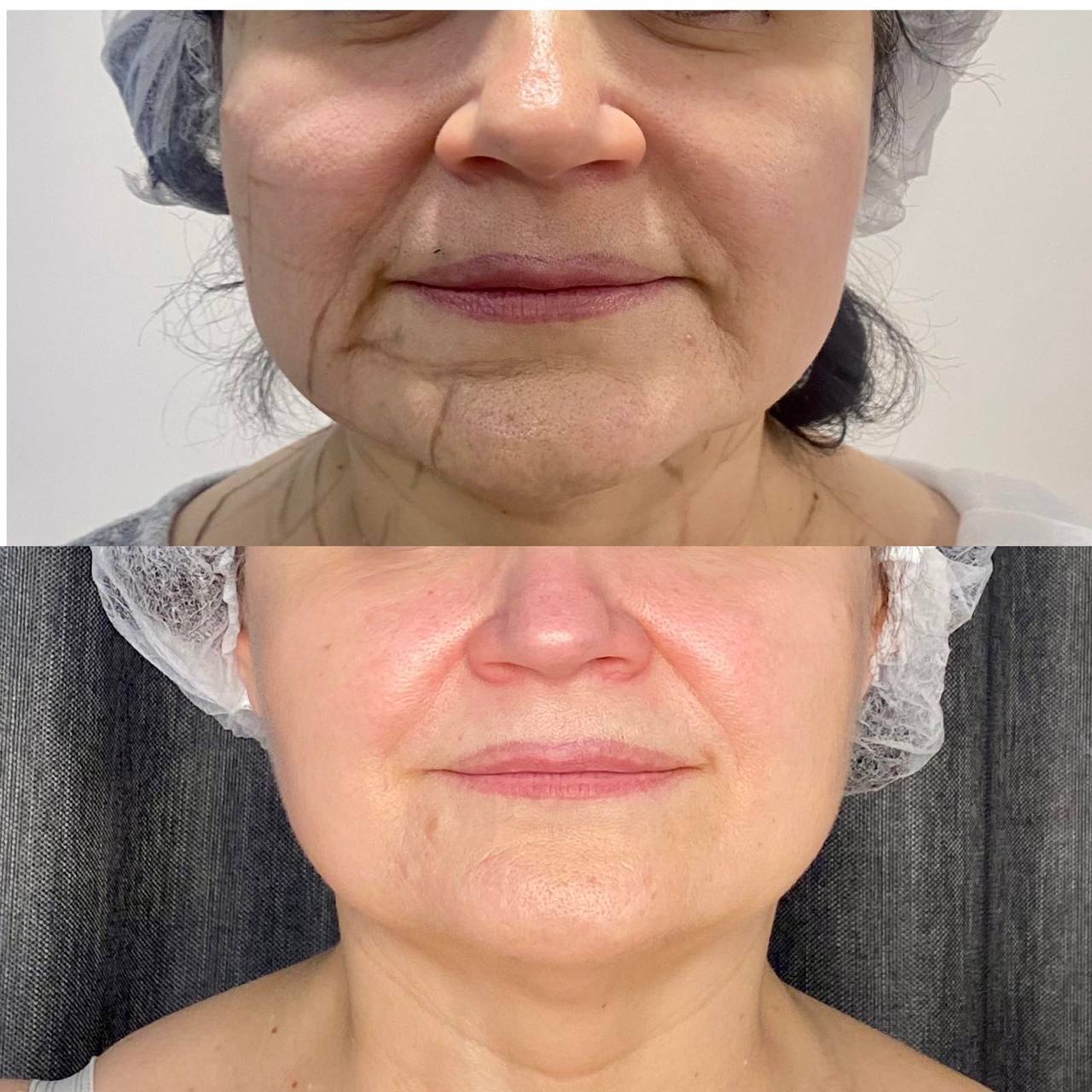 Безпосередньо після процедури пацієнти вже помічають незначний ліфтинг, і це лише 10-15% від очікуваного. Оцінку результату проводять через 3 місяці, коли вже сформувались нові колагенові волокна та можна спостерігати – підтяжку тканин, розгладження зморшок, покращення якості шкіри.