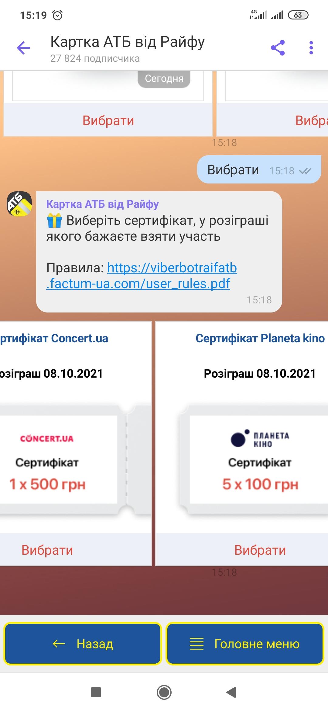 Кожні витрачені наступні 500 грн. дають додатковий шанс на участь у розіграші. Наприкінці місяця переможцям приходять SMS-повідомлення та надається можливість самостійно вибрати категорію товарів або послуг, на яку можна буде витратити подарунковий сертифікат.