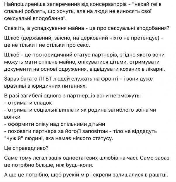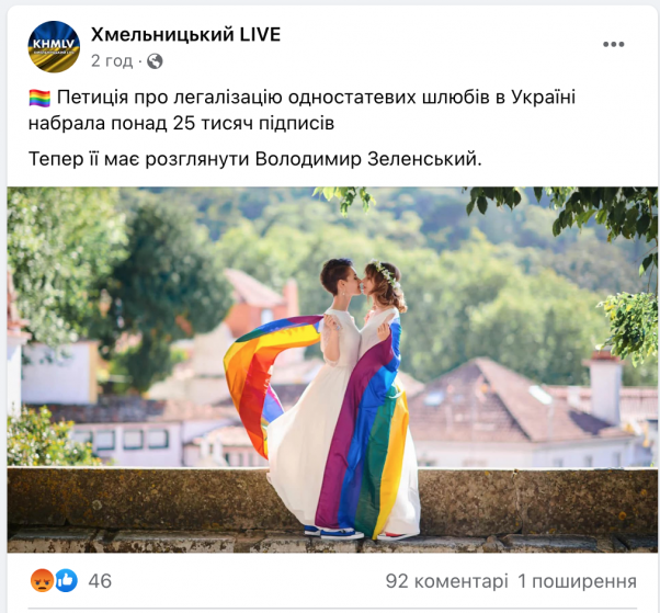 Хвиля дискусій стосовно легалізації одностатевих шлюбів котиться соцмережею. Хмельницькі групи у Фейсбук не стали винятком. До прикладу у Хмельницький LIVE поширили такий допис: