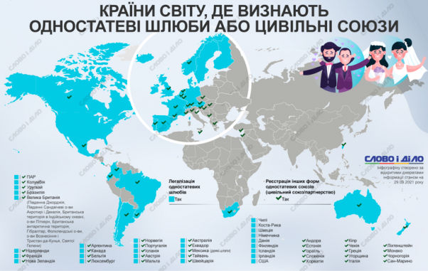 Отже, лише в 42 країнах станом на 2018 рік такі шлюби чи партнерства вважались законними.