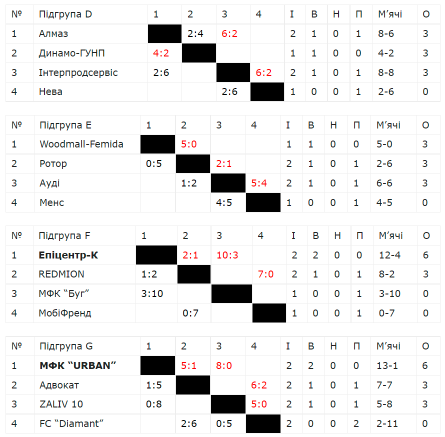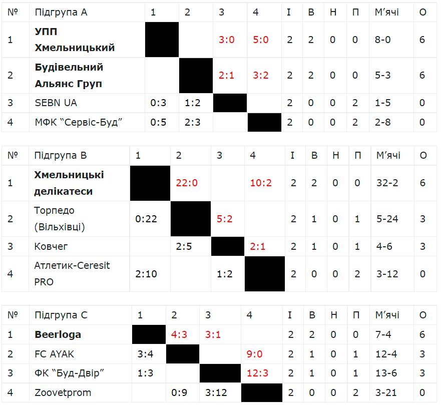Манук Восканян (BeerЛога) - Борис Ведмедюк (Будівельний Альянс Груп), Олег Тарадайко (УПП Хмельницький), Вадим Альохін (Епіцентр-К), Олексій Фетько (FC AYAC).