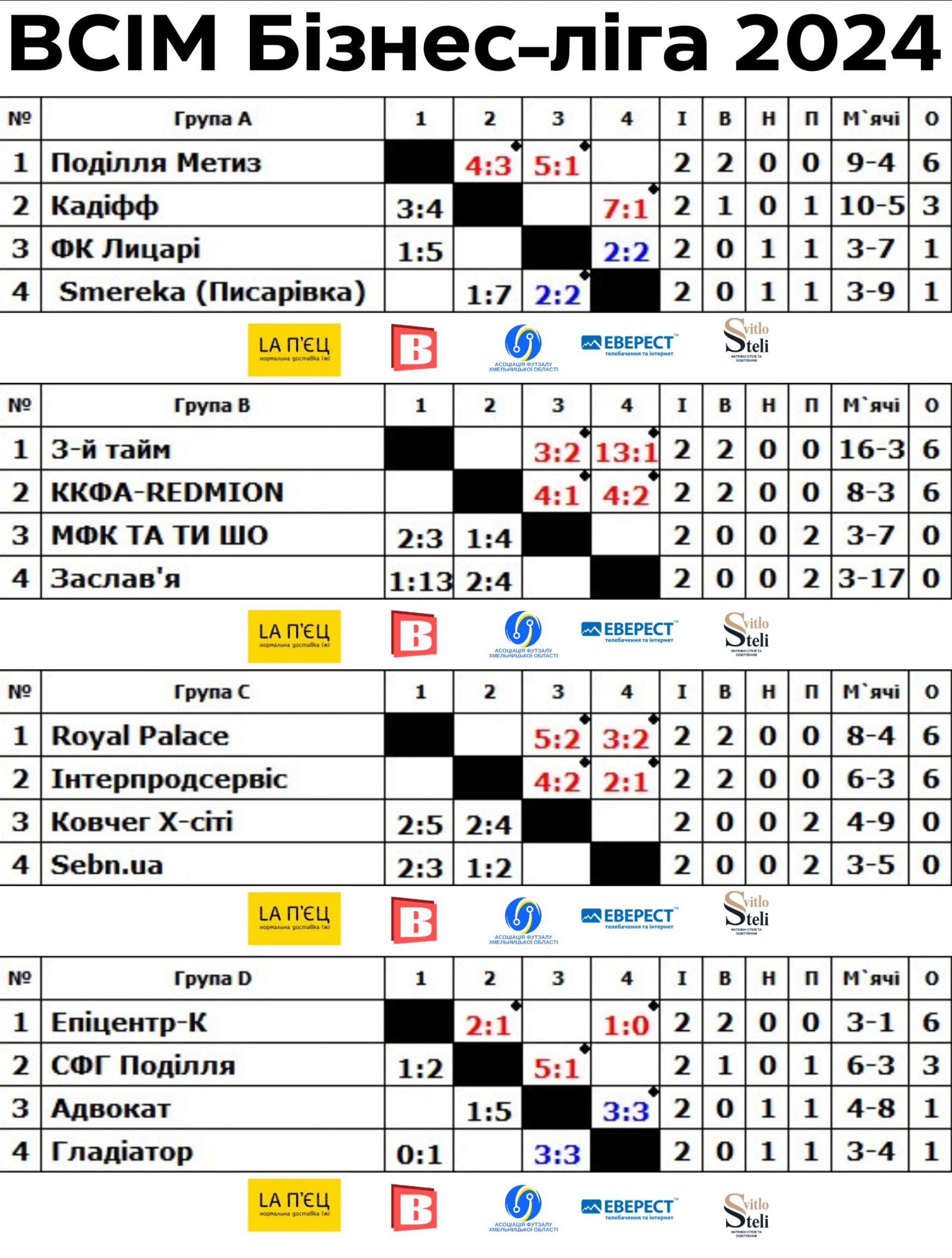 ВСІМ Бізнес-ліга 2024: турнірні таблиці